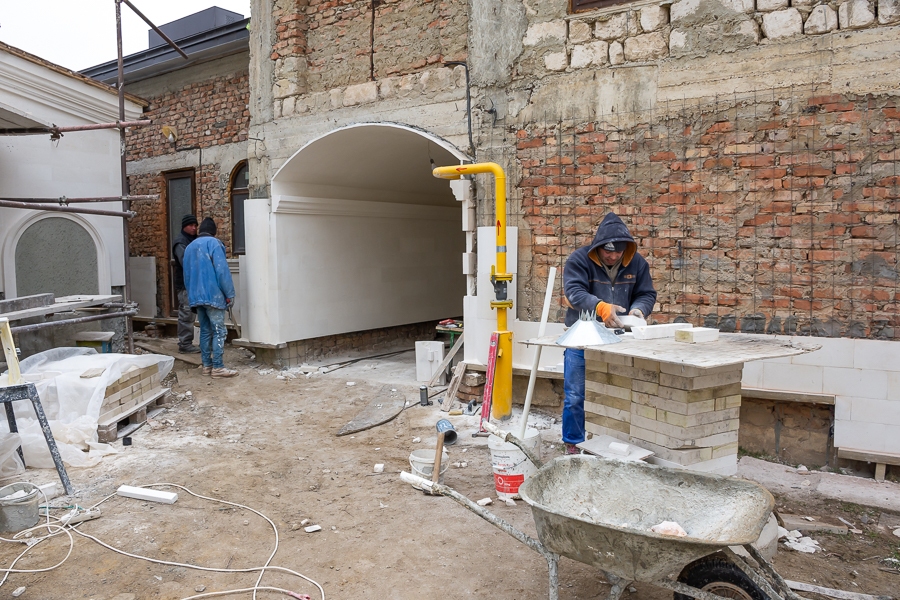 02-07,14,20,22,28-2024 Укладка камня на фасад церковного комплекса